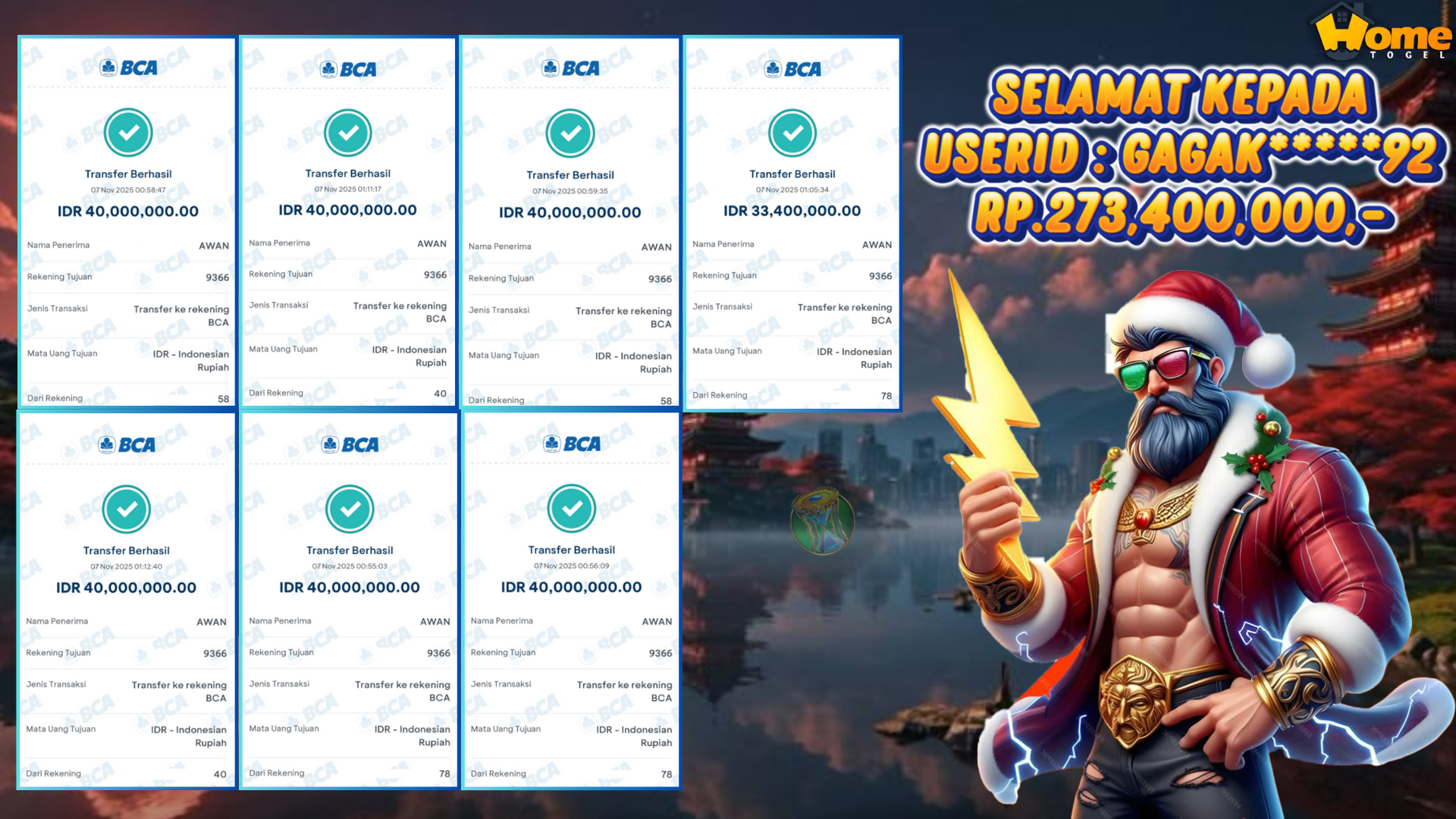 Selamat Kepada user Id GAGAK*****92 telah JACKPOT di Mahjong Ways (PGSoft) Dengan Total kemenangan Rp. 273,455,174,- Nominal Withdraw Rp. 273,400,000,- Salam JP hanya di HomeTogel. Ayo tunggu apalagi , segera daftarkan diri anda di HOMETOGEL.